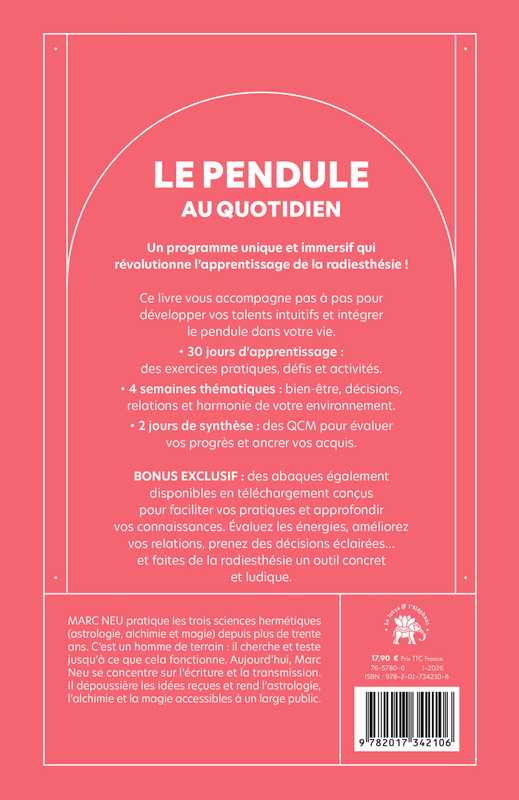 BONUS EXCLUSIF : des abaques également disponibles en téléchargement conçus pour faciliter vos pratiques et approfondir vos connaissances. Évaluez les énergies, améliorez vos relations, prenez des décisions éclairées… et faites de la radiesthésie un outil concret et ludique.