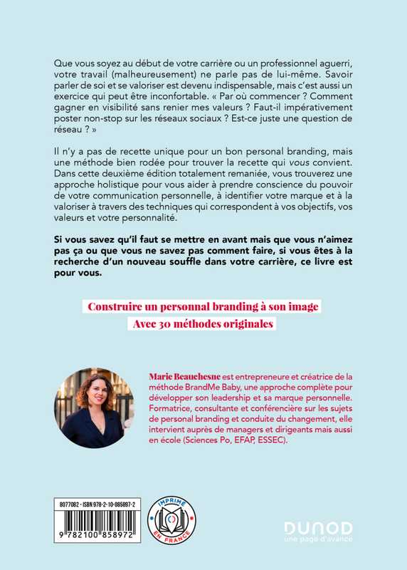 Il n’y a pas de recette unique pour un bon personal branding, mais une méthode bien rodée pour trouver la recette qui vous convient. Dans cette deuxième édition totalement remaniée, vous trouverez une approche holistique pour vous aider à prendre conscience du pouvoir de votre communication personnelle, à identifier votre marque et à la valoriser à travers des techniques qui correspondent à vos objectifs, vos valeurs et votre personnalité.