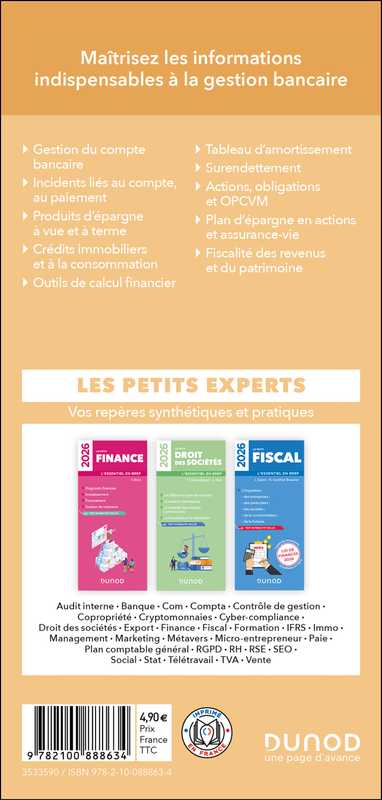En 48 pages et 21 fiches pratiques, le Petit Banque fournit toutes les informations indispensables à la gestion bancaire, en présentant notamment :