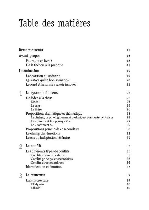 Ce manuel synthétique et pratique présente l’essentiel des techniques d'écriture d’un scénario. Chacune d’elles est présentée dans une chronologie formant un tout méthodologique que le lecteur pourra suivre pas à pas, de l’idée de départ à la mise au point finale du scénario, en passant par l’élaboration de la structure, l’utilisation des ressorts narratifs, la création des personnages, etc. Un exemple de création/rédaction de scénario est présenté tout au long du livre pour illustrer la théorie.