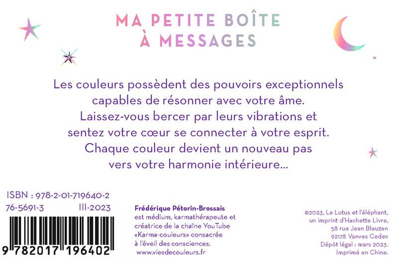 Les couleurs possèdent des pouvoirs exceptionnels capables de résonner avec votre âme. Laissez-vous bercer par leurs vibrations et sentez votre cœur se connecter à votre esprit. Chaque couleur devient un nouveau pas vers votre harmonie intérieure...