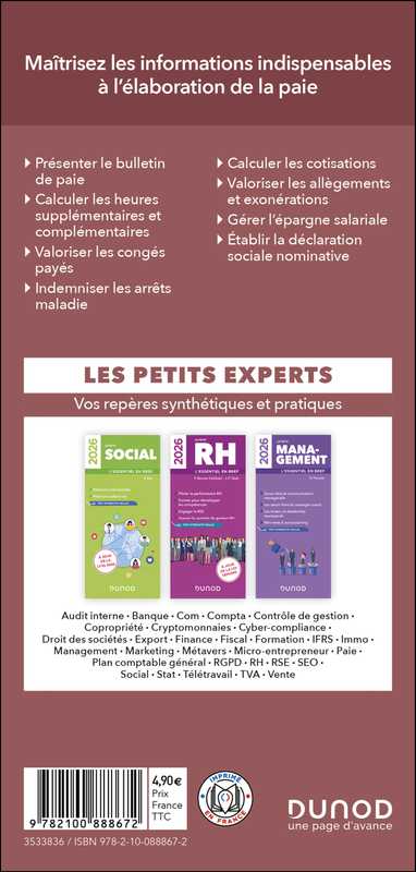 En 48 pages et 22 fiches pratiques, le Petit Paie fournit toutes les informations indispensables à l'établissement du bulletin de paie (du brut au net), avec de nombreux exemples chiffrés :