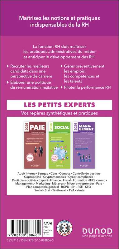 En 48 pages et 20 fiches pratiques, le Petit RH fournit toutes les notions et pratiques indispensables à la fonction RH pour maîtriser les pratiques administratives et anticiper le développement des RH :