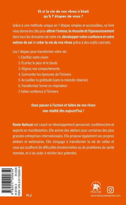 Grâce à une méthode unique en 7 étapes simples et accessibles, ce livre vous donne les clés pour attirer l’amour, la réussite et l’épanouissement dans tous les domaines de votre vie, développer votre confiance et votre estime de soi et créer la vie de vos rêves grâce à des outils concrets.