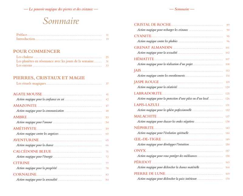 - 30 profils de pierres associés à des actions magiques pour bénéficier de leur pouvoir au quotidien.