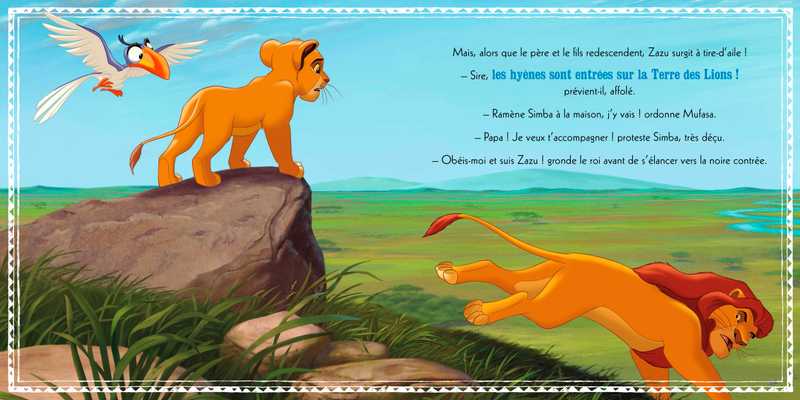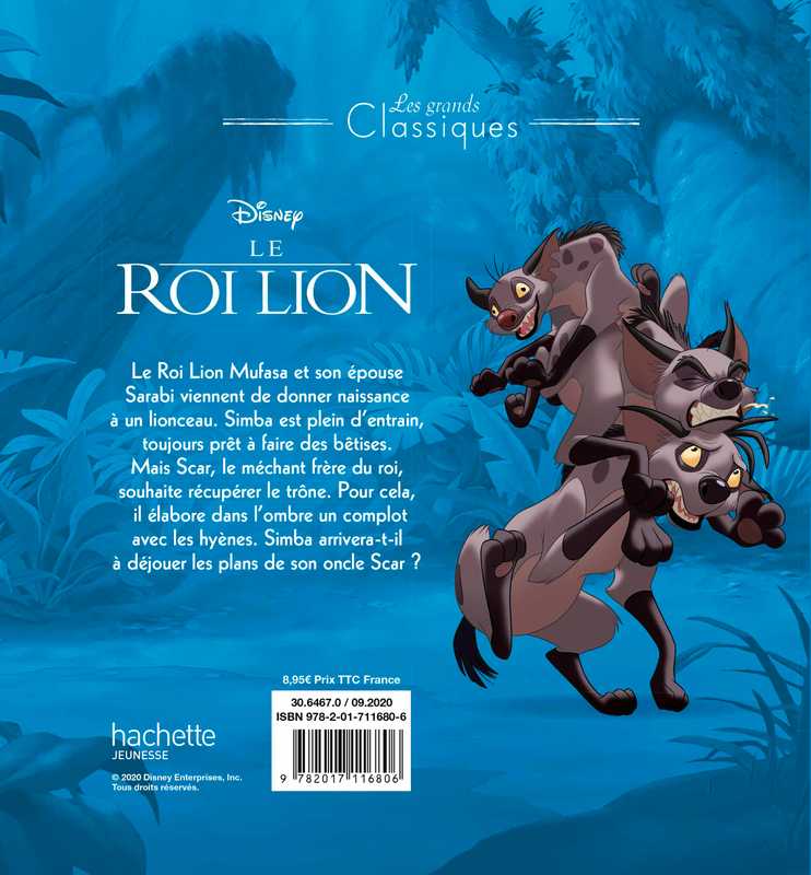 Histoire :Le Roi Lion Mufasa et son épouse Sarabi, viennent de donner naissance à un lionceau. Simba est plein d’entrain, toujours prêt à faire des bêtises. Mais Scar, le méchant frère du roi, souhaite récupérer le trône. Pour cela, il élabore un plan pour éliminer Mufasa et prendre sa place. Simba arrivera-t-il à déjouer les plans de son oncle ?