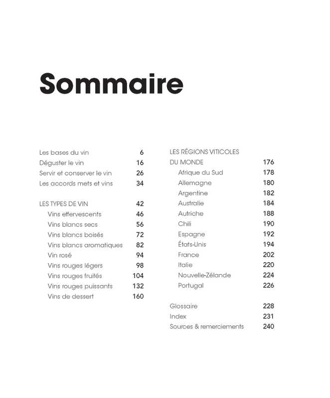 Un livre visuel et facile, qui met le vin à la portée de tous. Il vous aide à démystifier l'universdu vin, à maîtriser l'art de la dégustation et à dénicher les crus de qualité et des bouteilles que vous appréciez, pour toutes les occasions.