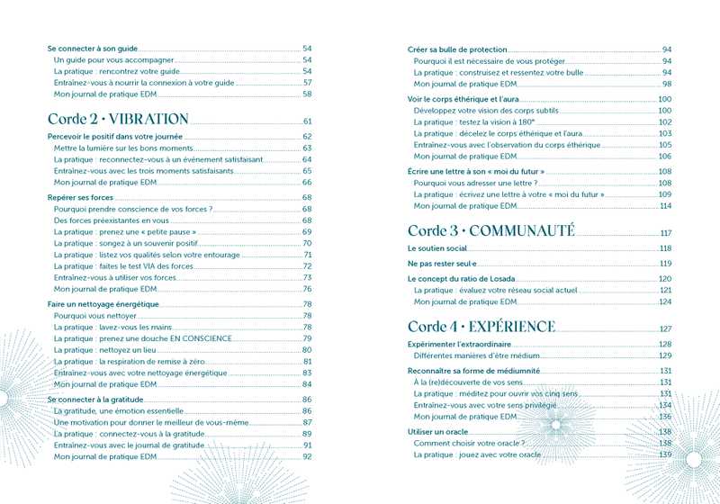 Dans ce manuel pratique vous apprendrez à tisser les 5 cordes de votre rituel unique : le calme, la vibration, la communauté, l’expérience et la posture. Grâce à de nombreux exercices et des instructions claires, vous parviendrez à utiliser vos perceptions et vous pourrez pratiquer la médiumnité en harmonie avec vous-même.
