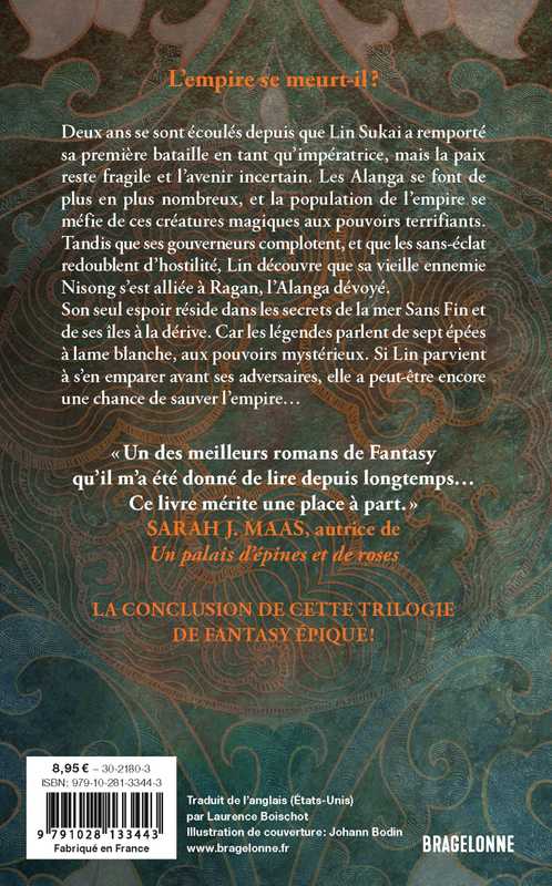 Deux ans se sont écoulés depuis que Lin Sukai a remporté sa première bataille en tant qu'impératrice, mais la paix demeure fragile et l'avenir incertain. Les Alanga se font de plus en plus nombreux, et la population de l'empire se méfie de ces créatures magiques aux pouvoirs terrifiants. Tandis que ses gouverneurs complotent, et que les sans-éclat redoublent d'hostilité, Lin découvre que sa vieille ennemie Nisong s'est alliée à Ragan, l'Alanga dévoyé.
