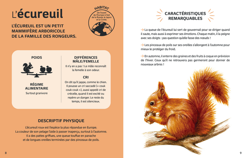 48 pages de documentaire proposant 18 fiches exhaustives sur les animaux les plus connus qui peuplent nos forêts.