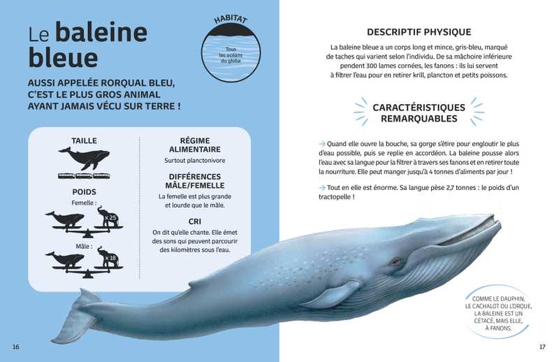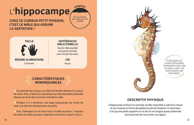 48 pages de documentaire proposant 18 fiches exhaustives sur les animaux les plus connus qui peuplent nos mers et nos océans.