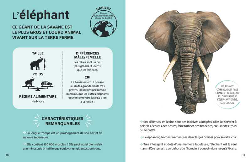 Grâce à ces portraits, l'enfant saura tout sur les caractéristiques principales et remarquables de ces animaux !