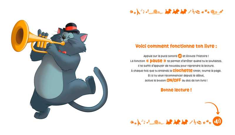– Une puce sonore de 5 minutes pour entendre l’histoire et savoir quand tourner la page grâce au son de clochette.