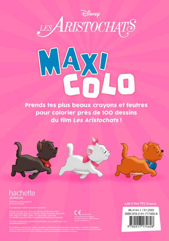 Un cahier de plus de 90 coloriages en noir et blanc des personnages du film Les Aristochats !