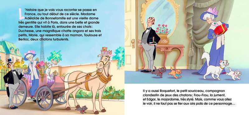 – Un petit album illustré de 48 pages, de la taille d’un boitier CD, pour découvrir les aventures des Aristochats.