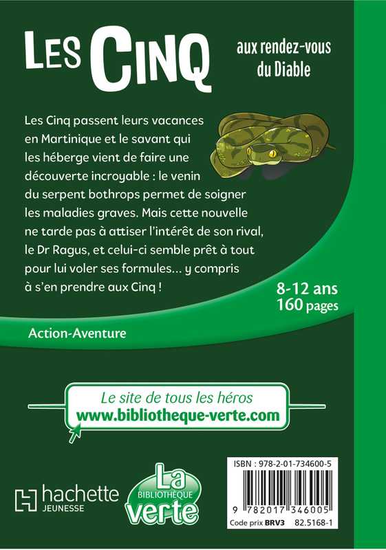 Les Cinq passent leurs vacances en Martinique et le savant qui les héberge vient de faire une découverte incroyable : le venin du serpent bothrops permet de soigner les maladies graves. Mais cette nouvelle ne tarde pas à attiser l’intérêt de son rival, le Dr Ragus, et celui-ci semble prêt à tout pour lui voler ses formules… y compris à s’en prendre aux Cinq !