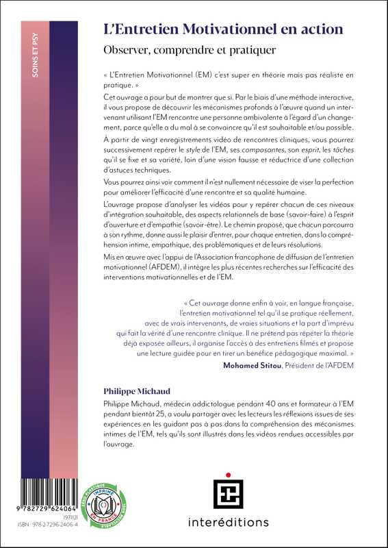Mis en œuvre avec l’appui de l’AFDEM et de nombreux membres de cette association, il intègre les plus récentes recherches sur l’efficacité des interventions motivationnelles et de l’EM.