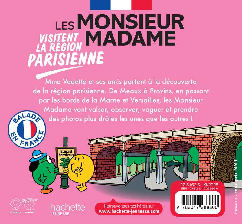 Mme Vedette et ses amis partent à la découverte de la région parisienne. De Meaux à Provins, en passant par les bords de la Marne et Versailles, les Monsieur Madame vont valser, observer, voguer et prendre des photos plus drôles les unes que les autres !