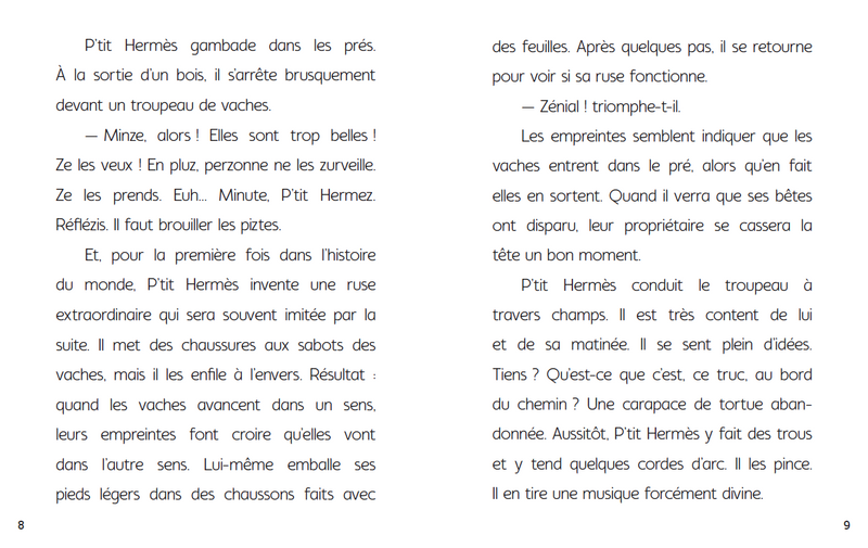 P’tit Hermès est un dieu fourbe et malicieux. Il n’hésite pas à faire des farces aux autres dieux, notamment en volant leurs biens les plus précieux. Pour calmer leur colère, Zeus charge Hermès d’accomplir une nouvelle mission : libérer la vache sacrée Io, gardée par le géant Argos. Mais les dieux mécontents cherchent à se venger : ils n’hésitent pas à placer plein d’obstacles sur la route du dieu messager.