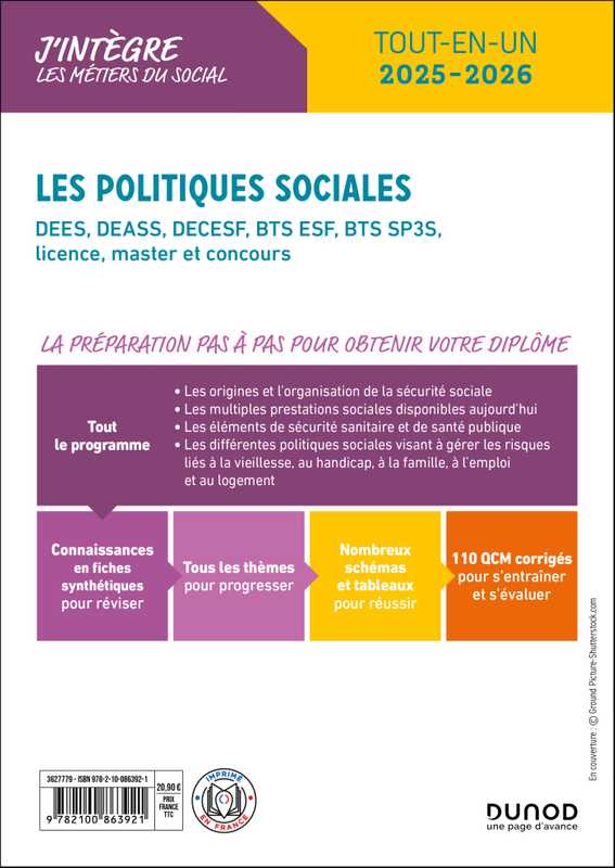 Cet ouvrage s'adresse aux étudiants en formations sociales - licence et master, DECESF, DEES et DEASS, BTS ESF et SP3S, etc. pour qui la maîtrise des politiques sociales est incontournable, dans le cadre du contrôle continu ou d'épreuves terminales.