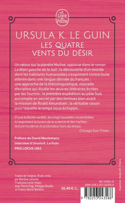 Les vingt nouvelles rassemblées dans Les Quatre Vents du désir déploient dans une brillante variété la fusion de la science et des mythes, d’une surface moderne et de profondeurs anciennes. Chicago Sun-Times.