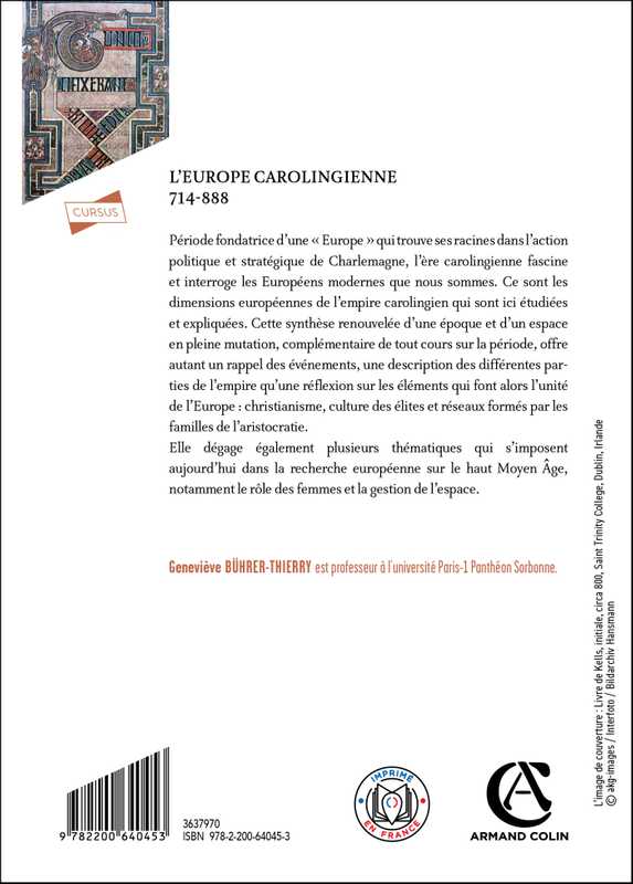 Période fondatrice d’une « Europe » qui trouve ses racines dans l’action politique et stratégique de Charlemagne, l’ère carolingienne fascine et interroge les Européens modernes que nous sommes. Ce sont les dimensions européennes de l’empire carolingien qui sont ici étudiées et expliquées. Cette synthèse renouvelée d’une époque et d’un espace en pleine mutation, complémentaire de tout cours sur la période, offre autant un rappel des événements, une description des différentes parties de l’empire qu’une réflexion sur les éléments qui font alors l’unité de l’Europe : christianisme, culture des élites et réseaux formés par les familles de l’aristocratie.