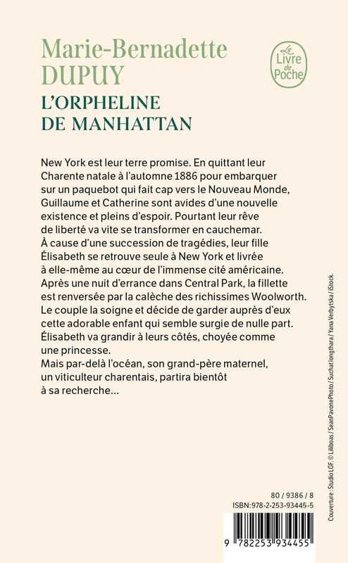 New York est leur terre promise. En quittant leur Charente natale à l’automne 1886 pour embarquer sur un paquebot qui fait cap vers le Nouveau Monde, Guillaume et Catherine sont avides d’une nouvelle existence et pleins d’espoir. Pourtant leur rêve de liberté va vite se transformer en cauchemar. À cause d’une succession de tragédies, leur fille Élisabeth se retrouve seule à New York et livrée à elle-même au cœur de l’immense cité américaine.