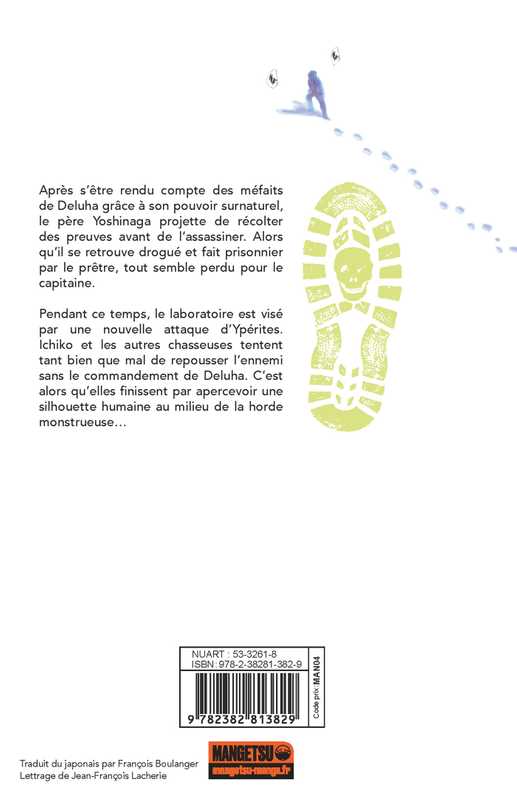 Après s'être rendu compte des méfaits de Deluha grâce à son pouvoir surnaturel, le père Yoshinaga projette de récolter des preuves avant de l'assassiner. Alors qu'il se retrouve drogué et fait prisonnier par le prêtre, tout semble perdu pour le capitaine. Pendant ce temps, le laboratoire est visé par une nouvelle attaque d'Ypérites. Ichiko et les autres chasseuses tentent tant bien que mal de repousser l'ennemi sans le commandement de Deluha. C'est alors qu'elles finissent par apercevoir une silhouette humaine au milieu de la horde monstrueuse...
