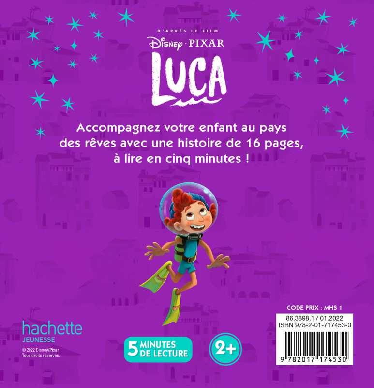 Dans cet ouvrage de 16 pages richement illustré, au texte court, facile et rapide à lire, découvrez une histoire dérivée du film Luca. Un texte adapté aux plus petits pour un temps de lecture de 5 minutes.