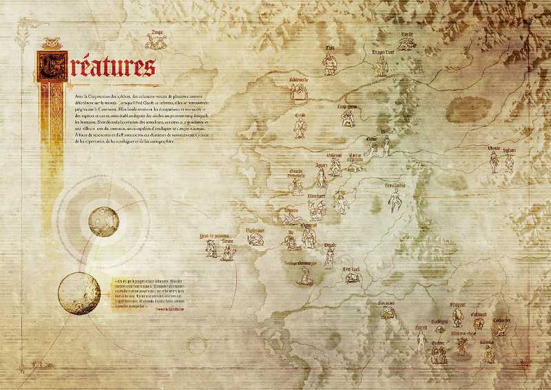 Des cartes représentant les différents royaumes, capitales, cités et forêts du Continent.
