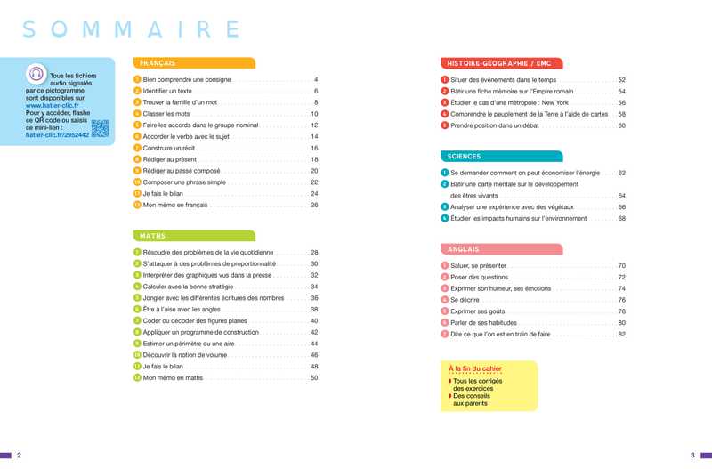 • L’ouvrage regroupe toutes les matières de la 6e : Français, Maths, Anglais, Histoire-géographie EMC, Sciences.