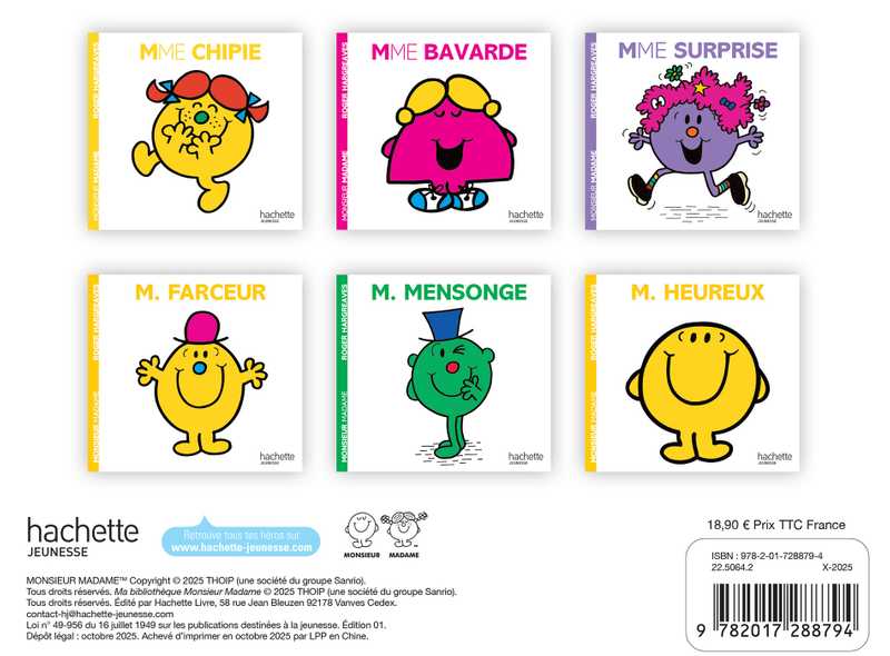 - 1 coffret rassemblant les histoires de 6 personnages emblématiques des Monsieur Madame