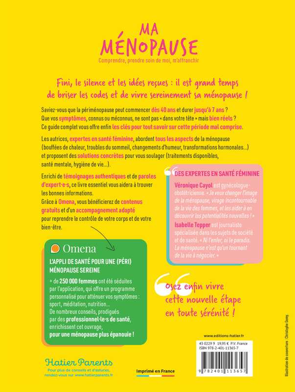 En partenariat avec l'application Omena, qui a déjà conquis plus de 250 000 femmes avec ses vidéos, ses conseils et ses parcours personnalisés, ce guide pratique et complet répondra à toutes vos questions, grâce à l'éclairage scientifique de Véronique Cayol et journalistique d'Isabelle Tepper.