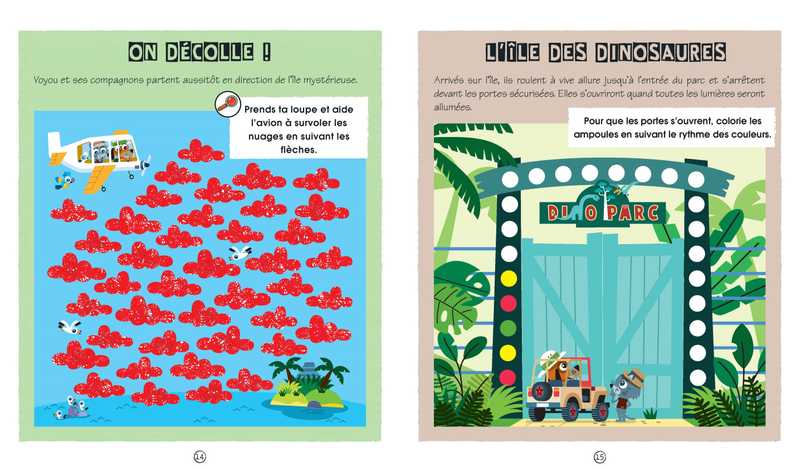 Une super loupe magique à filtre rouge, pour jouer et résoudre les énigmes sans avoir besoin de savoir lire : cherche et trouve, labyrinthes, 7 différences, coloriages codés, points à relier...