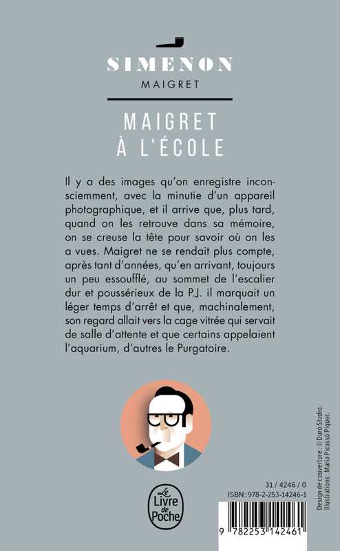 Maigret ne se rendait plus compte, après tant d'années, qu'en arrivant, toujours un peu essoufflé, au sommet de l'escalier dur et poussiéreux de la P. J. il marquait un léger temps d'arrêt et que, machinalement, son regard allait vers la cage vitrée qui servait de salle d'attente et que certains appelaient l'aquarium, d'autres le Purgatoire. Peut-être en faisaient-ils tous autant et était-ce devenu une sorte de tic professionnel ?