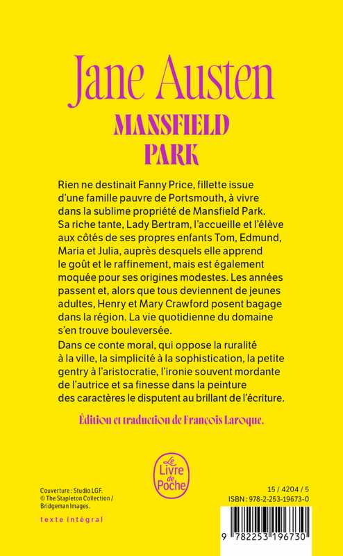 Rien ne destinait Fanny Price, fillette issue d’une famille pauvre de Portsmouth, à vivre dans la sublime propriété de Mansfield Park. Sa riche tante, Lady Bertram, l’accueille et l’élève aux côtés de ses propres enfants Tom, Edmund, Maria et Julia, auprès desquels elle apprend le goût et le raffinement mais est également moquée pour ses origines modestes. Les années passent et, alors que tous deviennent de jeunes adultes, Henry et Mary Crawford posent bagage dans la région. La vie quotidienne du domaine s’en trouve bouleversée.
