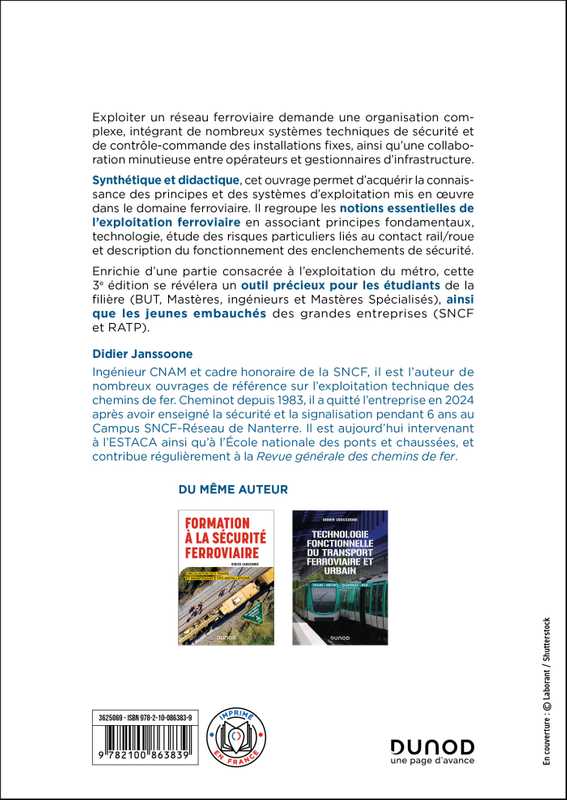 Enrichie d’une partie consacrée à l’exploitation du métro, cette 3e édition se révélera un outil précieux pour les étudiants de la filière (BUT, Mastères, ingénieurs et Mastères Spécialisés), ainsi que les jeunes embauchés des grandes entreprises (SNCF et RATP).