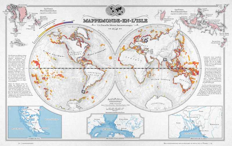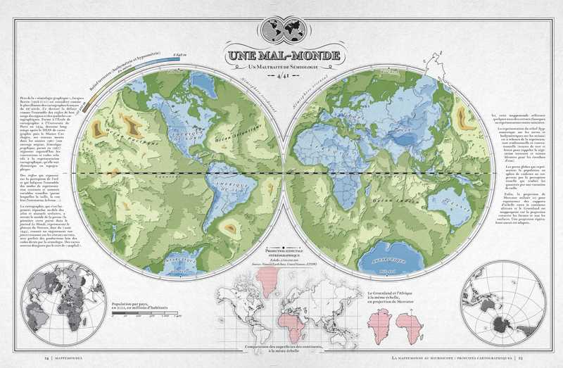 C’était la carte phare des anciens atlas, mais les ouvrages modernes l’ont délaissée. Pourtant, la mappemonde recèle bien des atouts. Xemartin Laborde ressuscite cette carte mythique dans une approche innovante, où l’esthétisme suranné se marie à la représentation des enjeux contemporains.