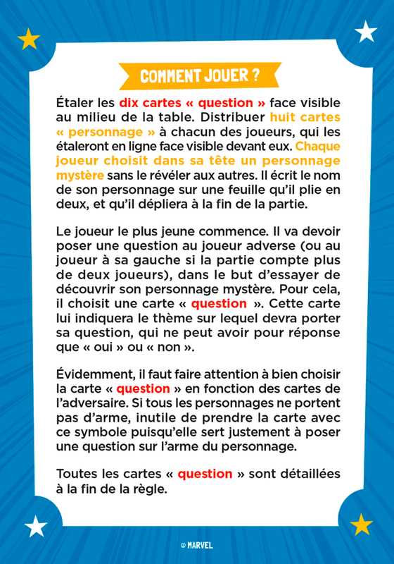 Un jeu de réflexion et de déduction : pour remporter la partie, il faudra deviner le personnage choisi par son adversaire en posant une série de questions.