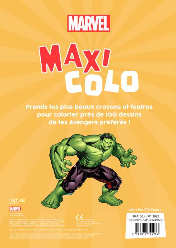 – De grandes illustrations pour colorier Hulk, Captain Marvel, Ant-Man et les autres Avengers selon ses envies !