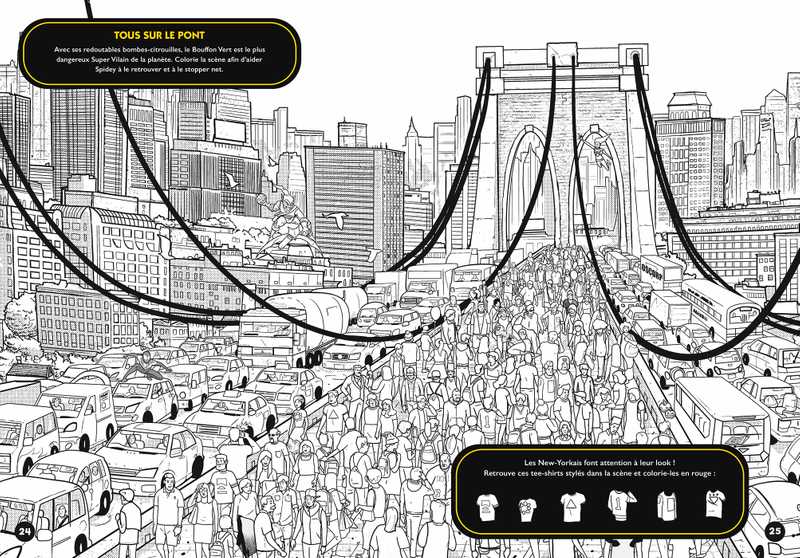 - 12 grandes scènes de cherche et trouve, qui fourmillent de détails pour débusquer les personnages, mais aussi de nombreux éléments cachés dans les décors !
