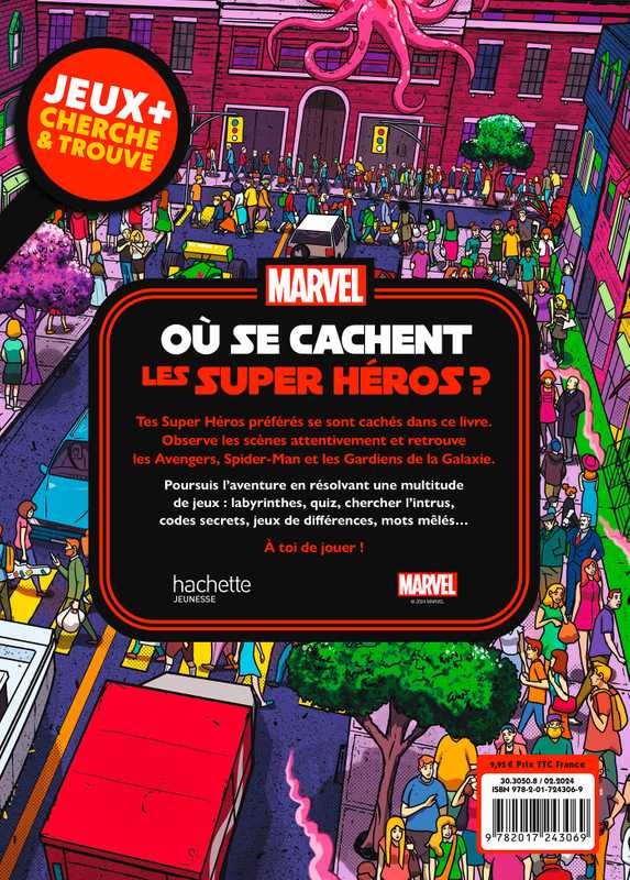 Notre collection de cherche et trouve à succès en version « jeux » ! Un cahier pour jouer à retrouver les héros et méchants Marvel, avec plein d’autres activités amusantes.