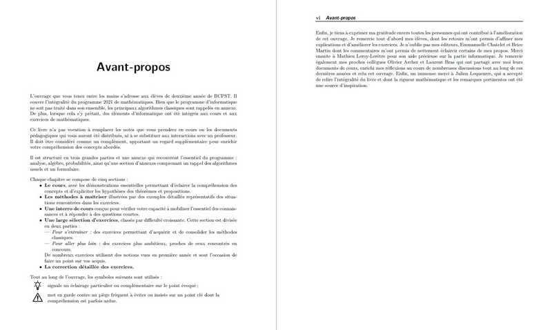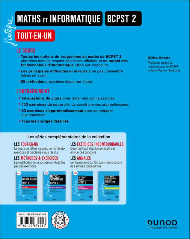 - Toutes les notions du programme de maths de BCPST 2, abordées dans le respect des textes officiels, et un rappel des fondamentaux d’informatique utiles aux concours.