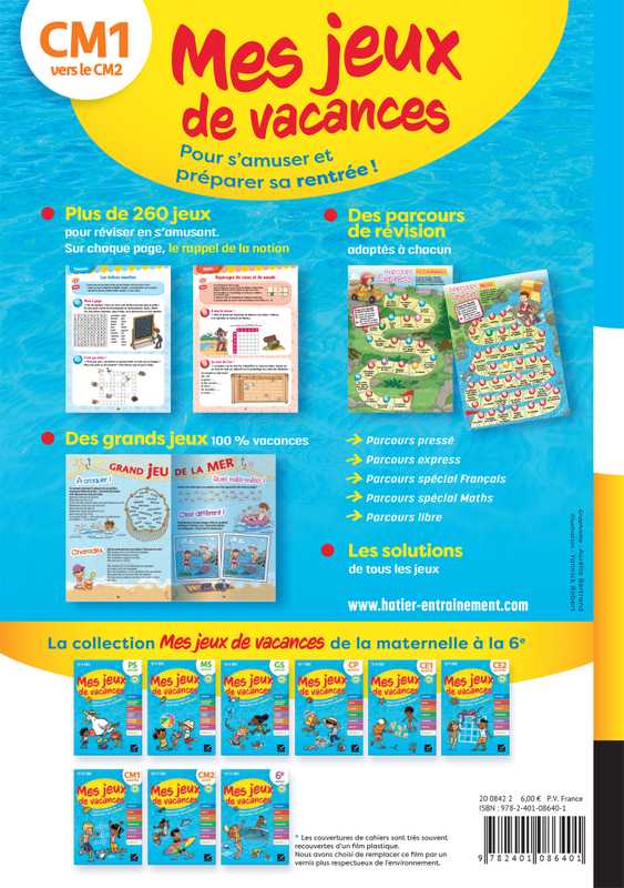 Plus de 260 jeux pour réviser toutes les matières du programme en s'amusant et préparer sa rentrée en CM2. Avec des parcours de révision adaptés à chacun, les rappels de toutes les notions acquises en CM1 et des grands jeux 100 % vacances. Avec un crayon.