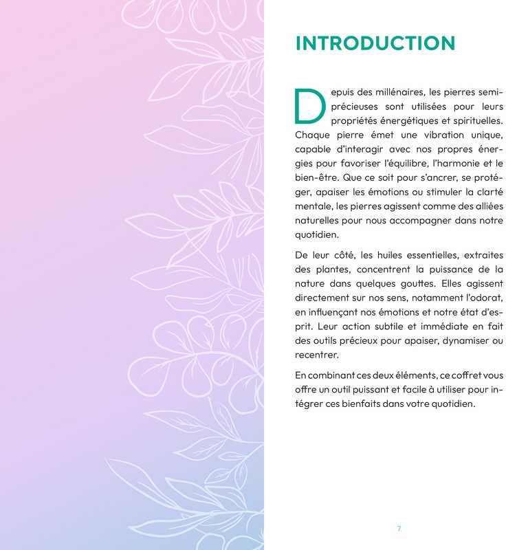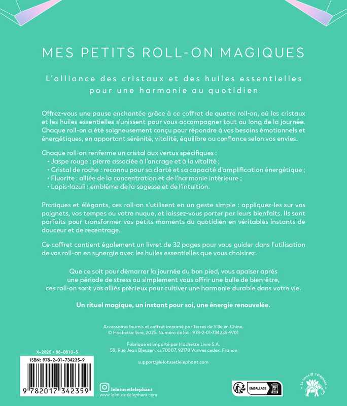 Ce coffret contient également un livret de 32 pages pour vous guider dans l’utilisation de vos roll-on en synergie avec les huiles essentielles que vous choisirez.