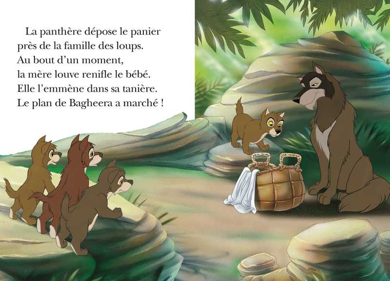 Dans la jungle, la panthère Bagheera a trouvé un petit d’homme. Il s’appelle Mowgli. Mais le garçon ne peut pas vivre dans la jungle ! C’est trop dangereux. Et surtout, le tigre Shere Khan est à sa poursuite…