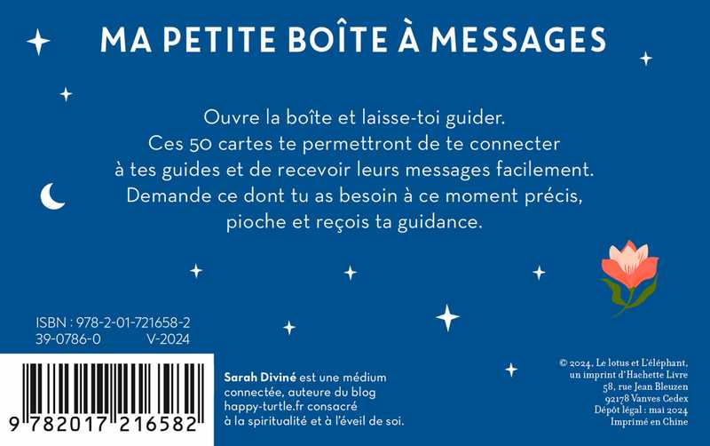 Ouvre la boîte et laisse-toi guider. Ces 50 cartes te permettront de te connecter à tes guides et de recevoir leurs messages facilement. Demande ce dont tu as besoin à ce moment précis, pioche et reçois ta guidance.