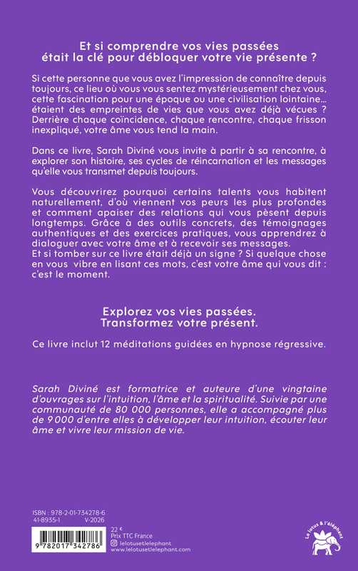 Dans ce livre, Sarah Diviné vous invite à partir à sa rencontre, à explorer son histoire, ses cycles de réincarnation et les messages qu’elle vous transmet depuis toujours.