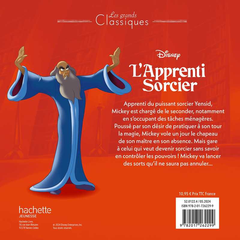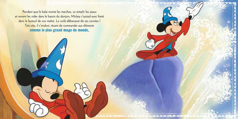 L’histoire : Apprenti du puissant sorcier Yensid, Mickey est chargé de le seconder, notamment en s’occupant des tâches ménagères. Poussé par son désir de pratiquer à son tour la magie, Mickey vole un jour le chapeau de son maître en son absence. Mais gare à celui qui veut devenir sorcier sans savoir en contrôler les pouvoirs ! Mickey va lancer des sorts qu’il ne saura pas annuler…