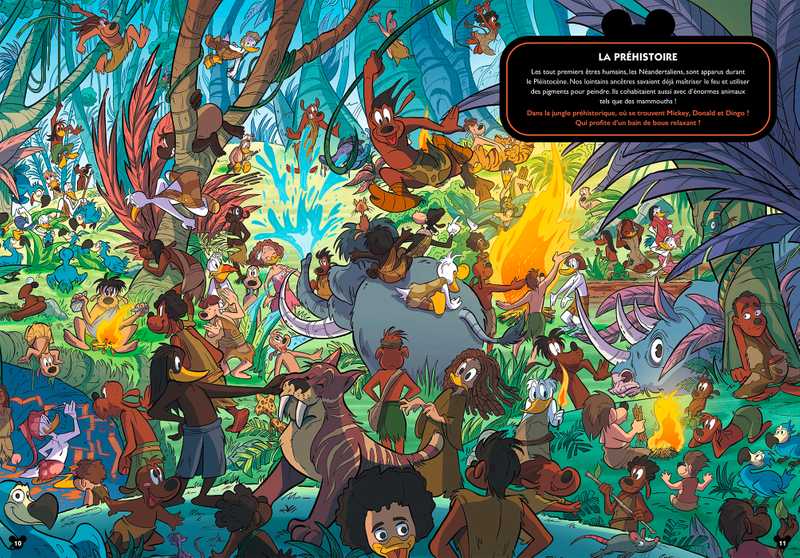 - Des illustrations qui fourmillent de détails pour s’amuser à retrouver Mickey, Minnie, Donald, Daisy, Dingo et leurs amis, mais aussi de nombreux éléments cachés dans les décors !
